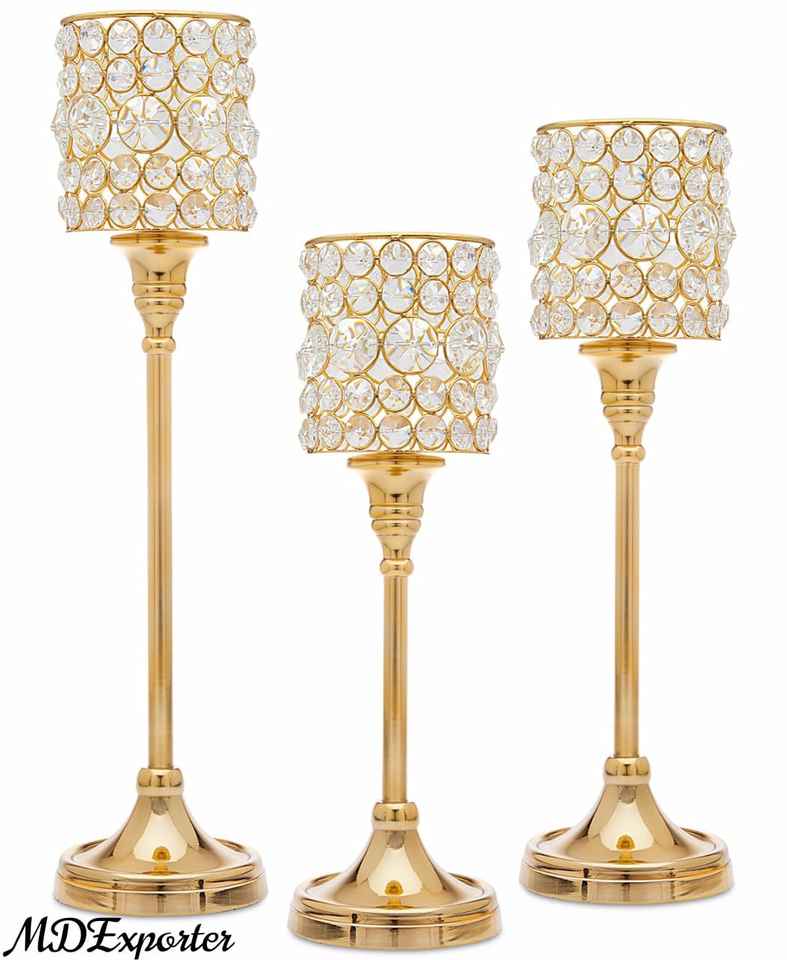 เชิงเทียนตั้งโต๊ะ,เชิงเทียนคริสตัลกลางโต๊ะสำหรับขายแก้วสีทองยาวสูงปรับแต่งสีพื้นพิมพ์
