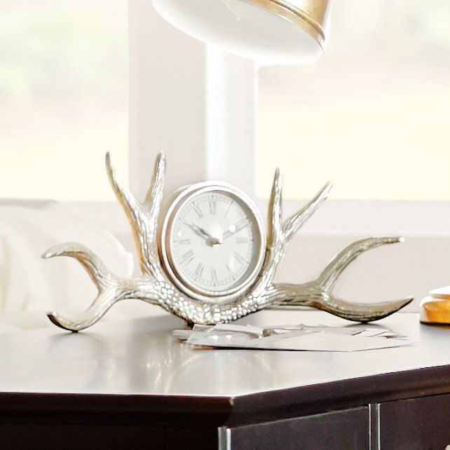 เขากวางอลูมิเนียมตั้งโต๊ะนาฬิกาตกแต่งห้องนั่งเล่นเทียนโลหะสำเร็จรูปจากเยอรมัน
