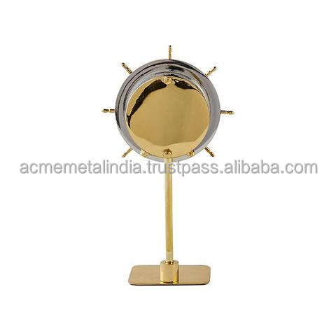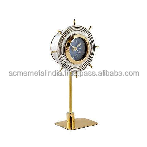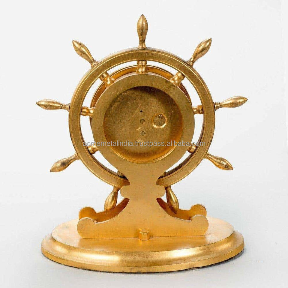 นาฬิกาตั้งโต๊ะรูปวงล้อเรือ ทำจากโลหะเคลือบทอง เหมาะสำหรับตกแต่งบ้านสไตล์วินเทจ สำนักงาน และโรงแรม