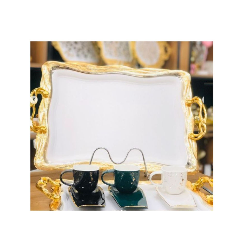 ตกแต่งโต๊ะถาดเสิร์ฟอาหารพร้อมที่จับสง่างามคลาสสิกบ้านบนโต๊ะอาหารขนมหวานสําหรับบ้านและโรงแรมอุปกรณ์เสริม