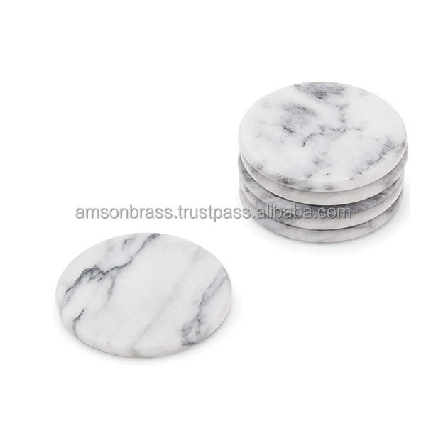 ชุดที่รองแก้วหินอ่อนทรงสี่เหลี่ยม4ชิ้นแผ่นกันความร้อนหินอ่อนไม้มะม่วงสีขาว