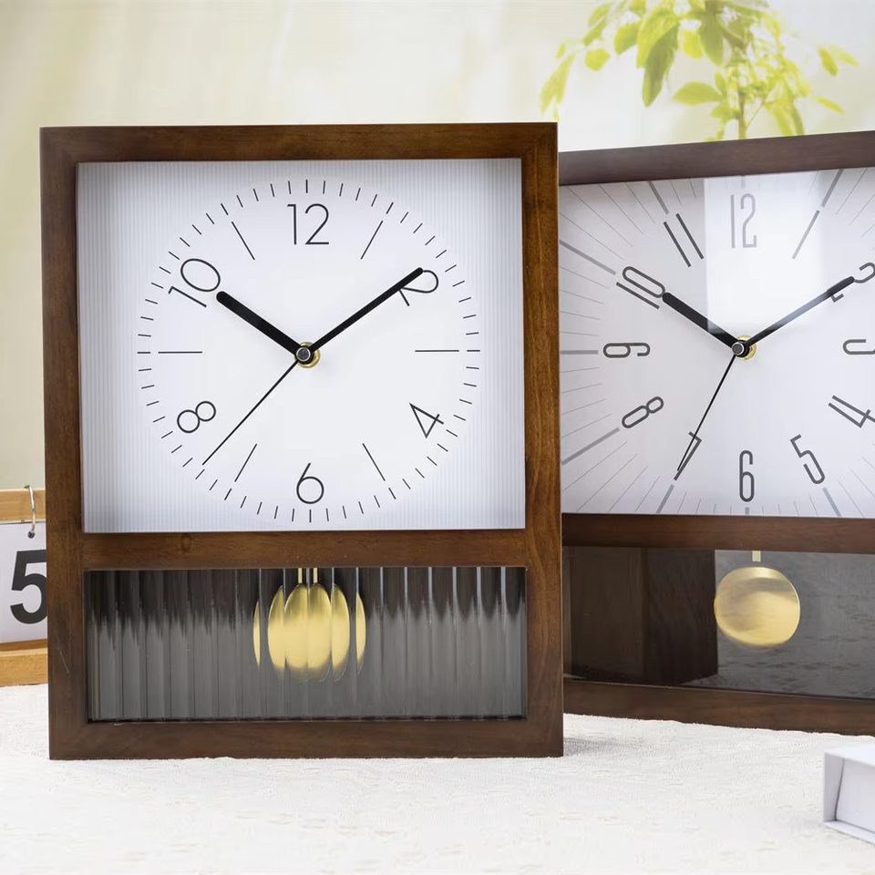 นาฬิกาตั้งโต๊ะตกแต่งบ้าน ควอตซ์ อนาล็อก ไม้ พร้อมลูกตุ้ม