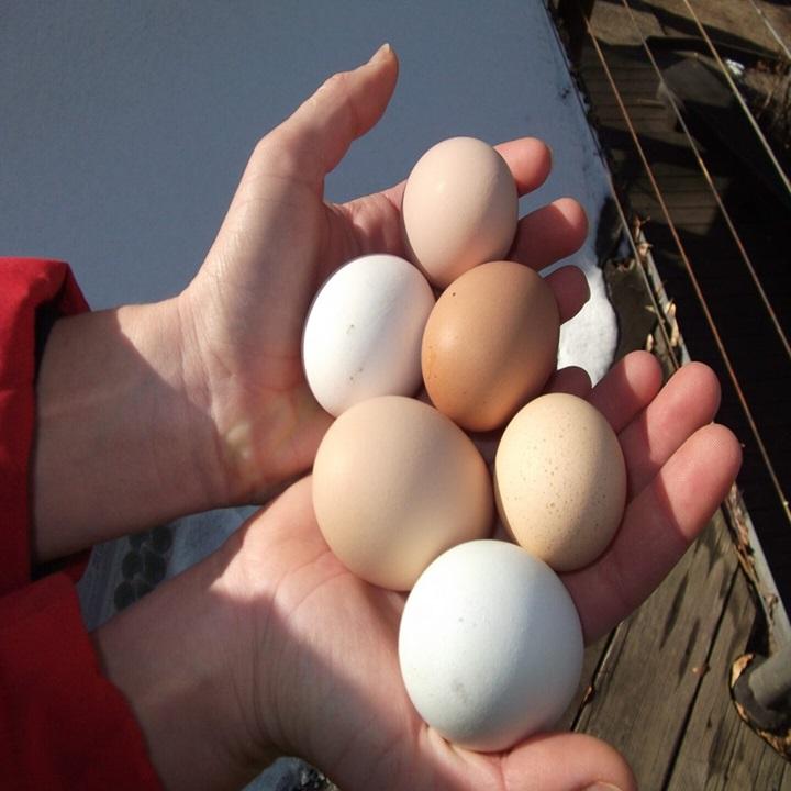 ไข่ไก่สีน้ำตาลสดและสีขาวขนาดเล็กถึงขนาดใหญ่