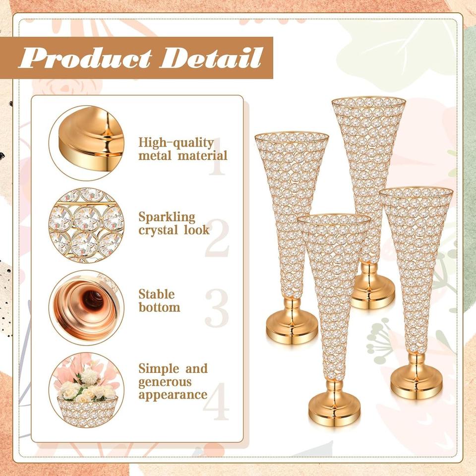 แจกันคริสตัลทรงสูง20นิ้วสำหรับวางตรงกลางโต๊ะแต่งงานแจกันดอกไม้ทรัมเปตทำจากโลหะคริสตัล
