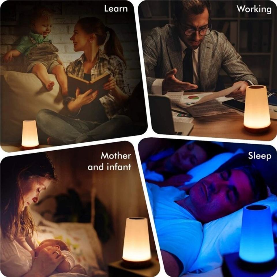 โคมไฟตั้งโต๊ะโคมไฟข้างเตียงสำหรับห้องนอน 13 สีเปลี่ยนสีได้ด้วยระบบสัมผัส ไฟกลางคืน RGB รีโมทหรี่แสงได้ ชาร์จ USB ได้ พกพาสะดวก