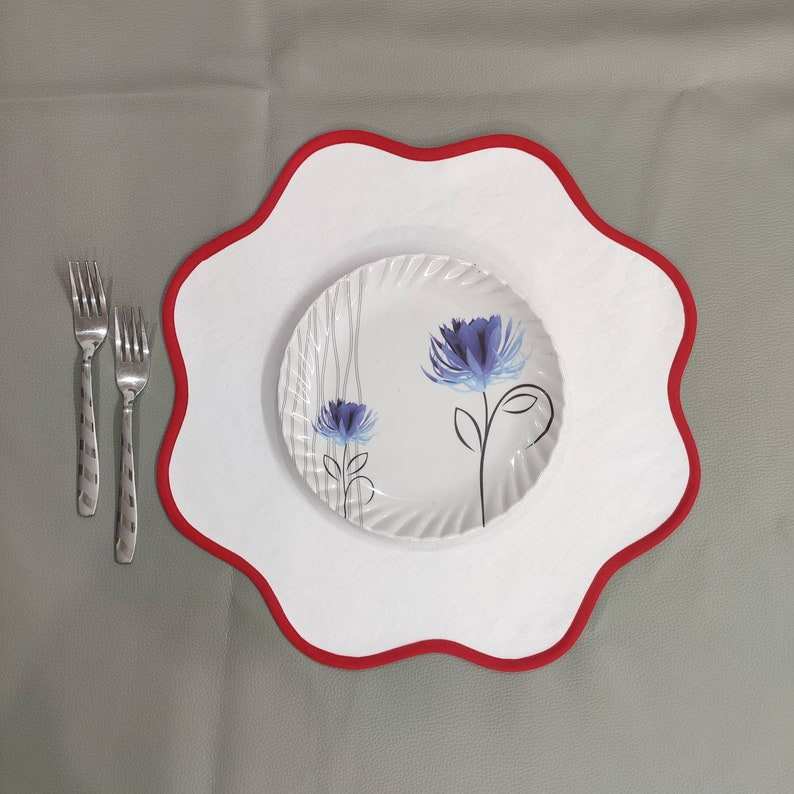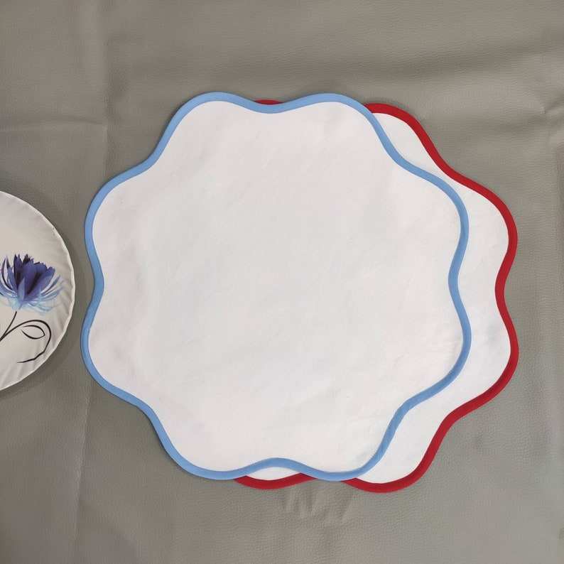 ผ้าปูโต๊ะ แผ่นรองจานสีขาว แผ่นรองจานขอบเย็บ และผ้าฝ้ายลายคลื่นวงกลม แผ่นรองจานค็อกเทล ของขวัญวันพ่อ