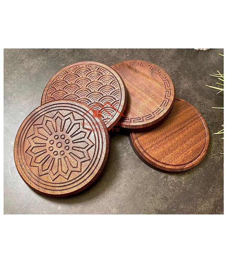 ชุดถาดรองแก้วไม้สำหรับจัดเก็บบนโต๊ะอุปกรณ์สำหรับเครื่องดื่มใช้งานในราคาขายส่งจากอินเดีย