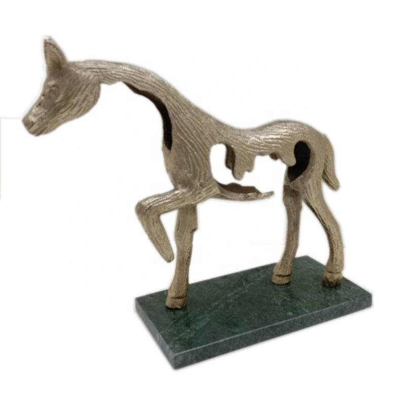 รูปปั้นม้าอลูมิเนียมทำด้วยมือสไตล์โมเดิร์นฐานหินอ่อนสี่เหลี่ยมผืนผ้าสีเขียวทองเหลืองหยาบรูปสัตว์