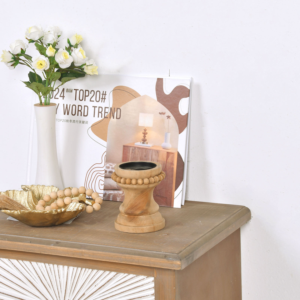 ของตกแต่งบนโต๊ะสไตล์ชนบท ของโบราณ เชิงเทียนไม้ ฐานไม้สนธรรมชาติ ที่วางเทียนรูปปั้น ของตกแต่งบ้านสไตล์วินเทจรักษ์โลก
