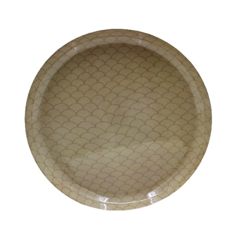 บนโต๊ะจานเหล็กชาร์จนิกเกิลสีดำและสลักจานตกแต่งสำหรับเสิร์ฟแฮนด์เมด