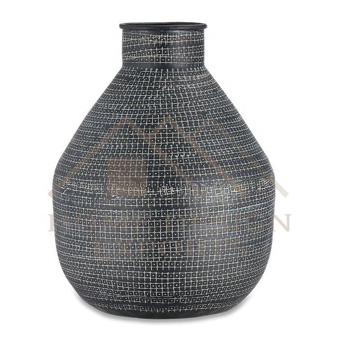 แจกันดอกไม้บนโต๊ะสำหรับตกแต่งงานแต่งงานแจกันเครื่องปั้นดินเผาเหล็กทรงแจกันดอกไม้สำหรับห้องนั่งเล่น