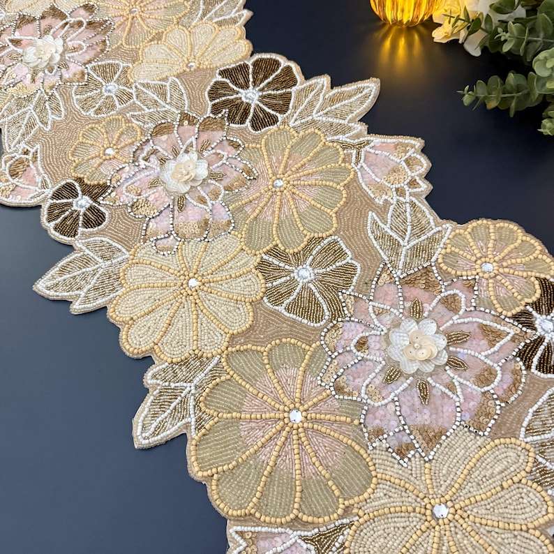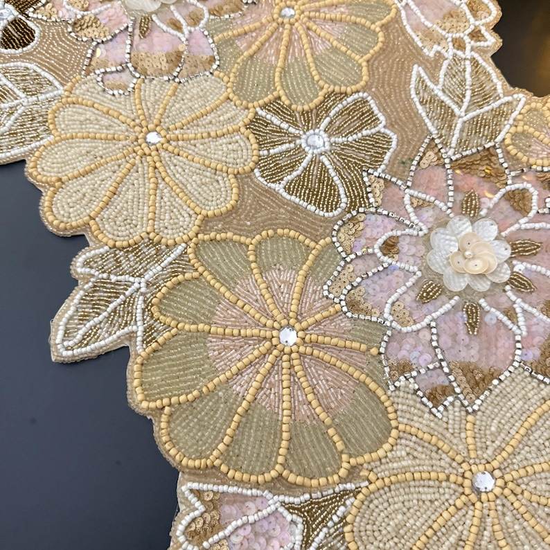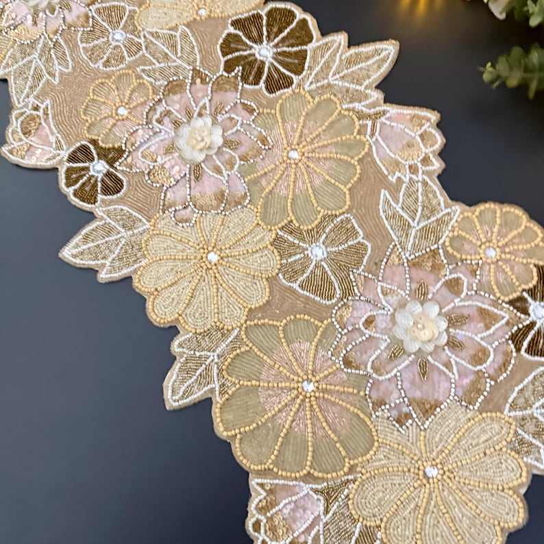 โต๊ะวิ่งทำมือลูกปัดลายดอกไม้ฤดูใบไม้ผลิ13x36inchmulticolour