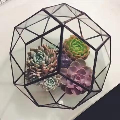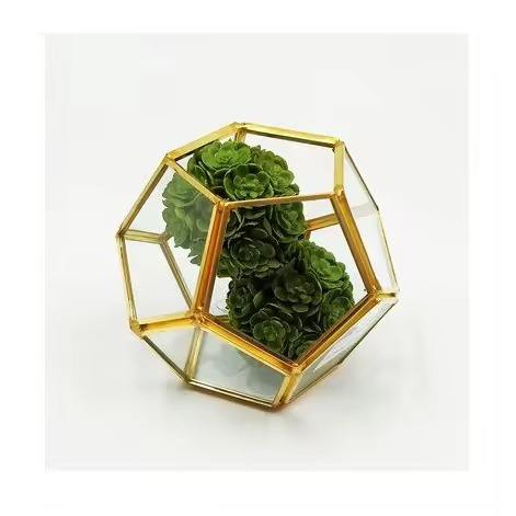กระถางต้นไม้แก้วโลหะตกแต่งโต๊ะ ตู้โชว์ต้นไม้ในร่มสุดหรู ของตกแต่งบ้าน