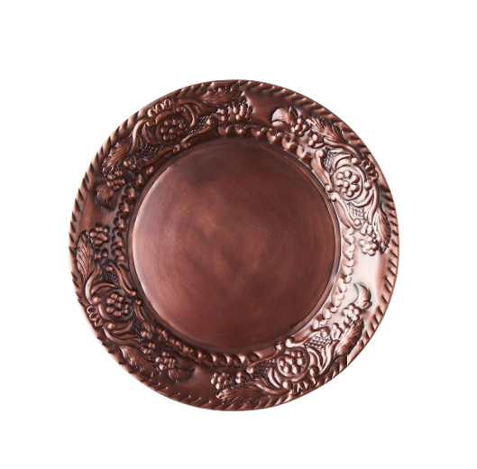 จานโลหะแบบโบราณสำหรับตกแต่งบนโต๊ะจานที่เสิร์ฟอาหารสำเร็จรูปจานชาร์จสำหรับใช้ในห้องครัวโรงแรมใช้ในการจัดเลี้ยง