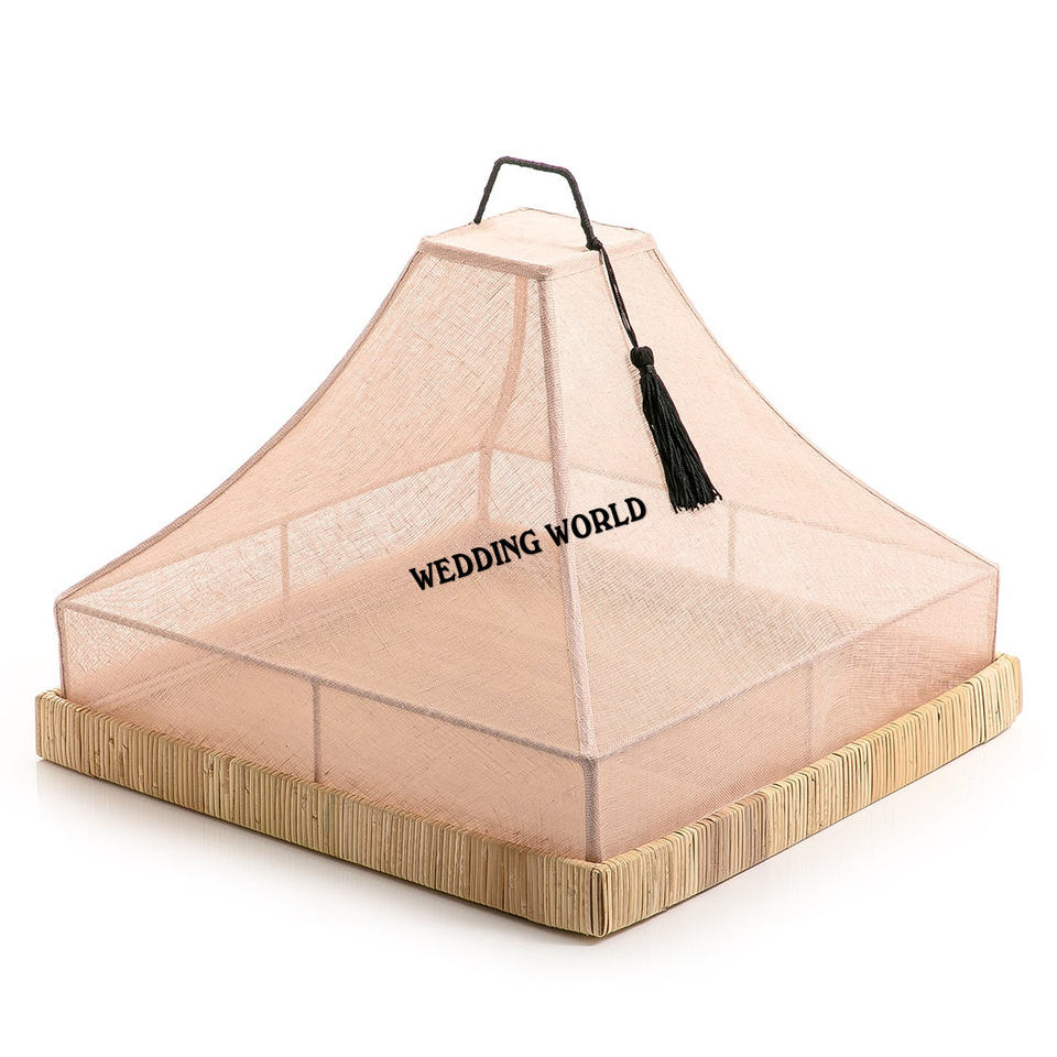 ถาดหวายสำหรับตกแต่งโต๊ะพร้อมฝาปิดผ้าลินินถาดหวายตกแต่งทรงสี่เหลี่ยมปรับสีได้ตามต้องการ