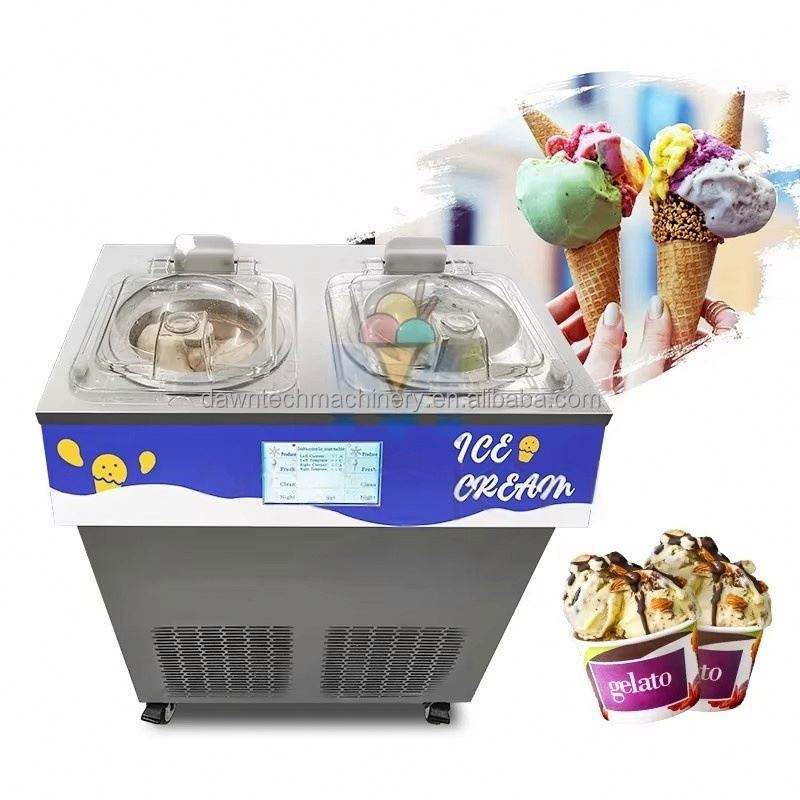 เครื่องทำไอศกรีมเจลาโต้แบบตั้งโต๊ะสองถังเชิงพาณิชย์สไตล์อิตาลี 48 ลิตร/ชั่วโมง
