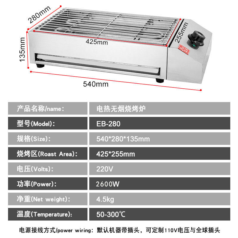 เตาบาร์บีคิวไฟฟ้าแบบตั้งโต๊ะ สแตนเลส ไร้ควัน สำหรับปีกไก่ ใช้ในเชิงพาณิชย์