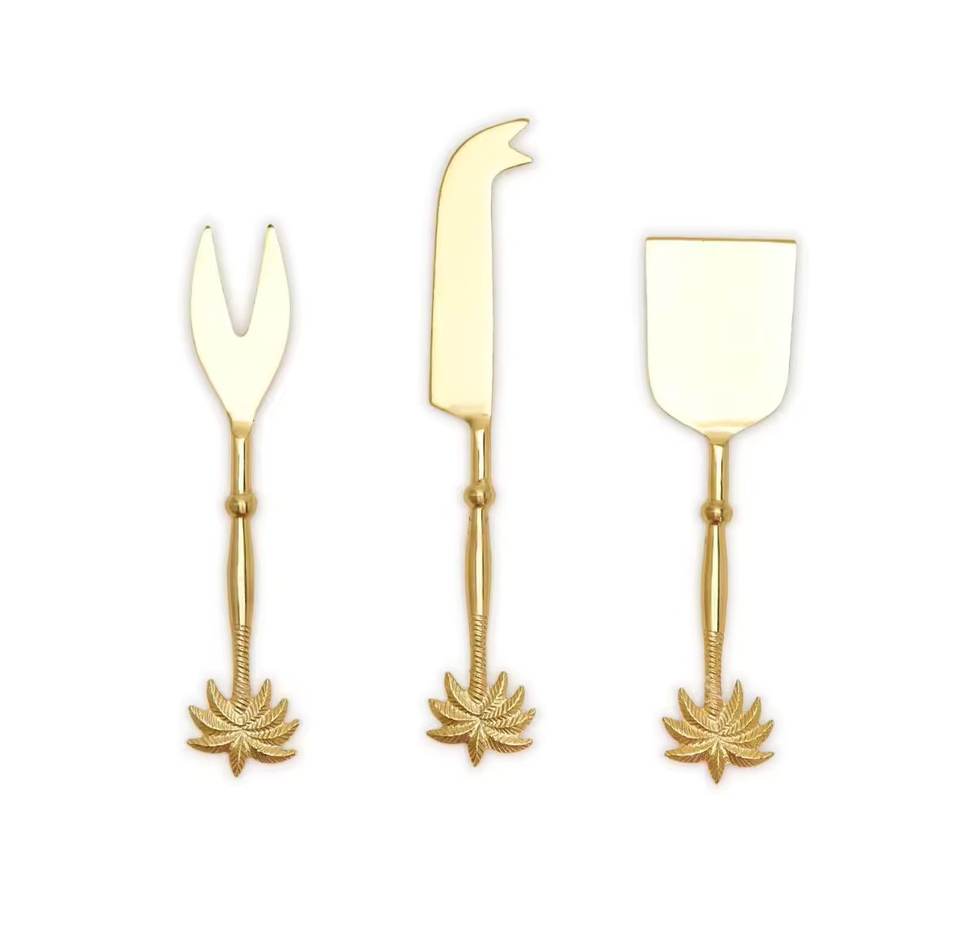 ชุดอุปกรณ์ชีสสแตนเลสสตีล 3 ชิ้น สีทอง ดีไซน์หรูหรา พร้อมด้ามจับเพรียวบาง มีดชีสและที่ปาดเนย ลดราคา