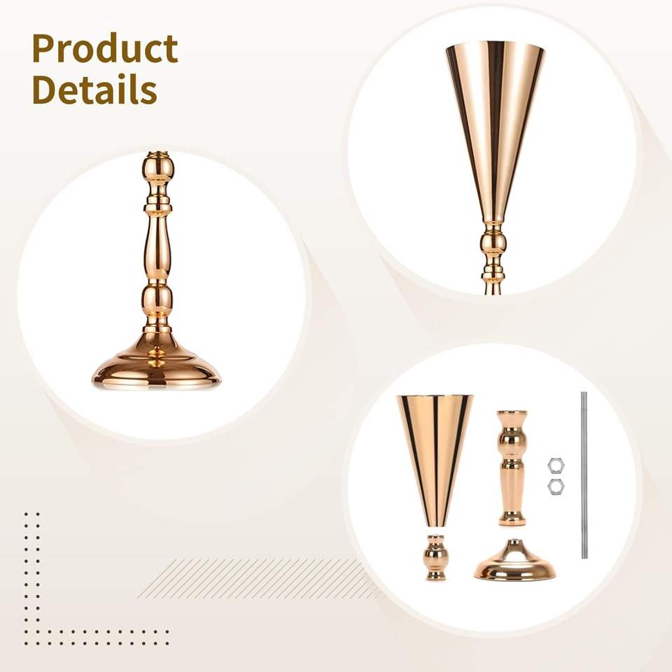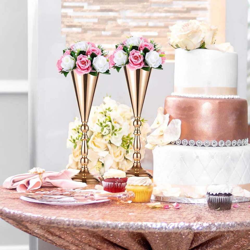แจกันดอกไม้โลหะสำหรับงานแต่งงานบนโต๊ะ