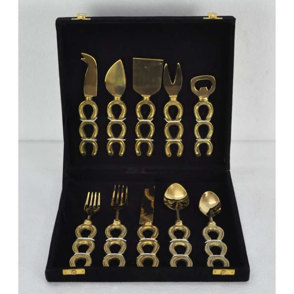 ชุดอุปกรณ์บนโต๊ะอาหาร กล่องของขวัญสุดหรู ชุดมีดชีสตกแต่ง ชุดช้อนส้อมสีทอง สำหรับร้านเบเกอรี่ คาเฟ่ ใช้ในงานแต่งงาน ของตกแต่งล่าสุด