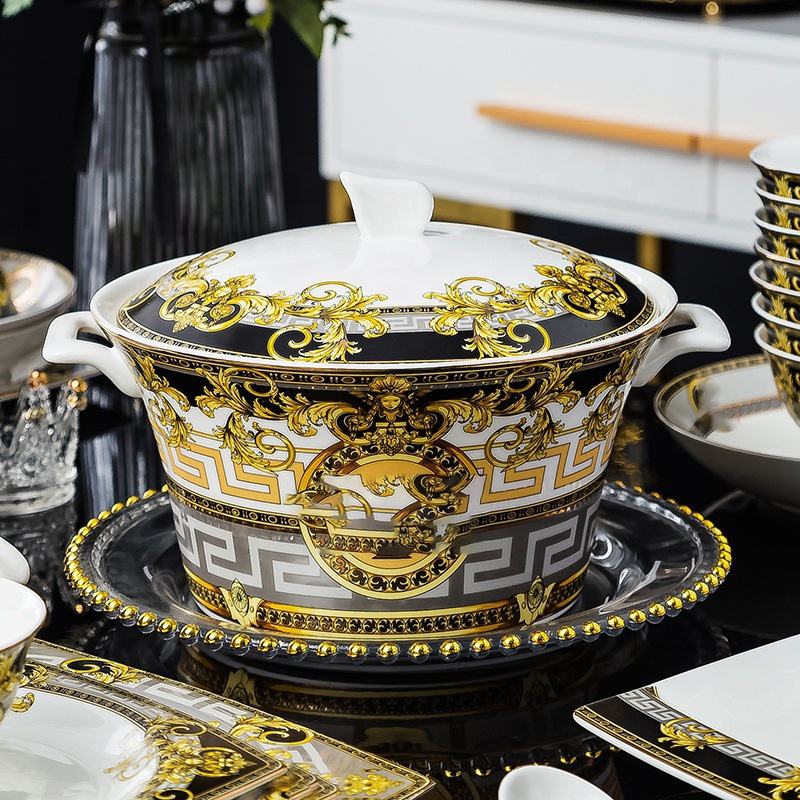ชุดจานเซรามิกบนโต๊ะอาหาร60ชิ้นจานอาหารค่ำสำหรับงานแต่งงานกล่องหรูหราแบบกำหนดเองสไตล์จีน