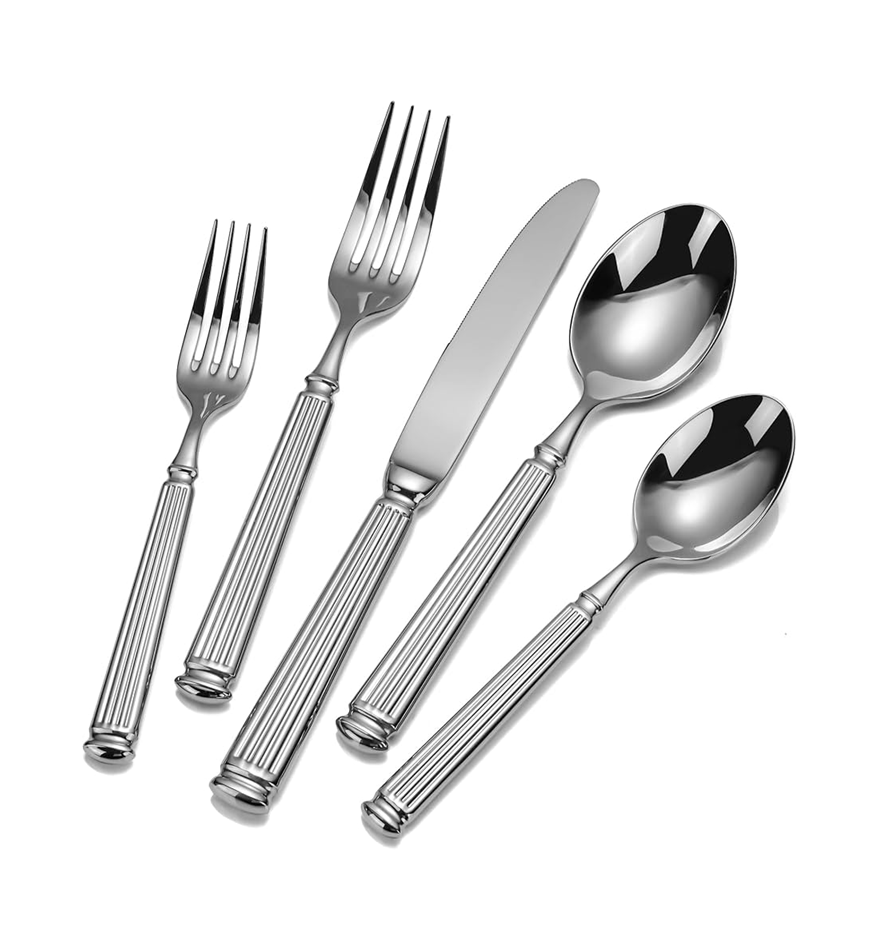 เครื่องใช้บนโต๊ะอาหารชุดช้อนส้อมสแตนเลสด้ามยาวชุดช้อนส้อมชุดมีดมิเรอร์เหล็กสำหรับอาหารค่ำโรงแรม