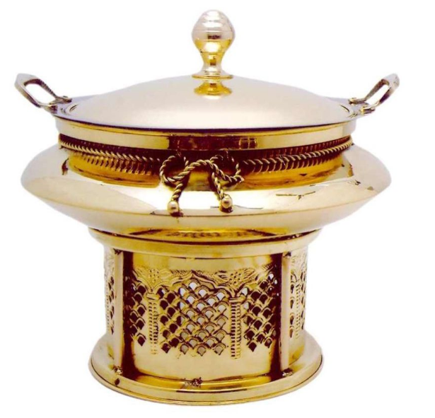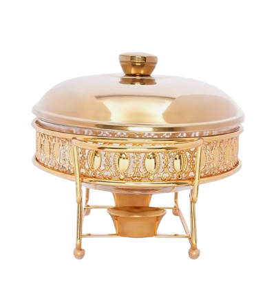 จานอุ่นอาหารสำหรับตกแต่งบนโต๊ะอาหารดีไซน์เนอร์ขัดเงาสีทองสำหรับงานเลี้ยงบุฟเฟ่ต์มื้อค่ำ