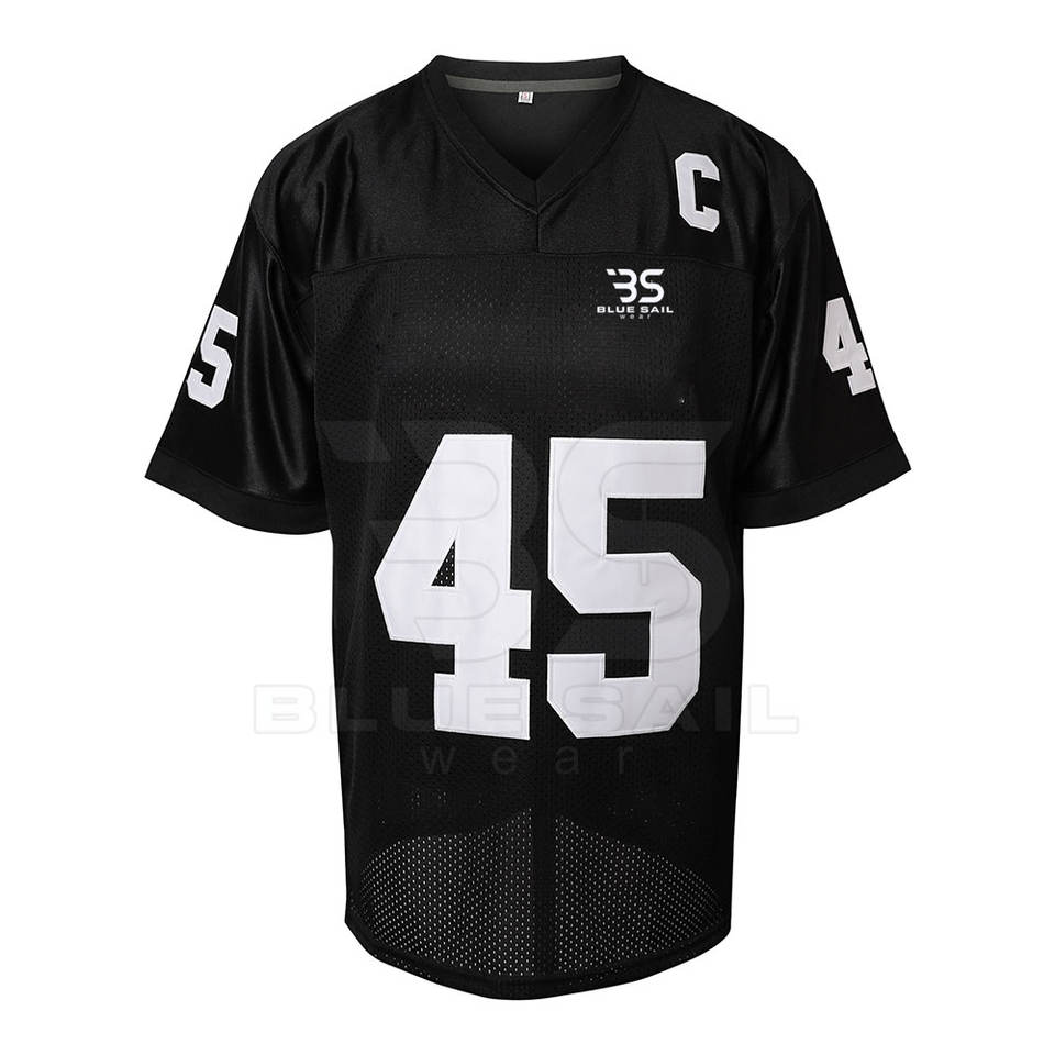 เสื้อฟุตบอลอเมริกันผ้าลายทแยงพร้อมหมายเลขและโลโก้ที่กำหนดเอง