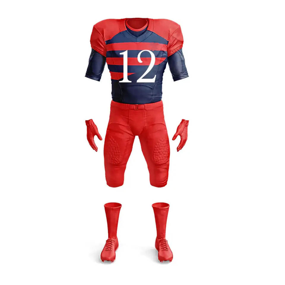 ชุดกีฬาอเมริกันฟุตบอลหลายสีชุดเครื่องแบบเล่นฟุตบอลอเมริกันผ้าทวิลดีไซน์ตามสั่ง