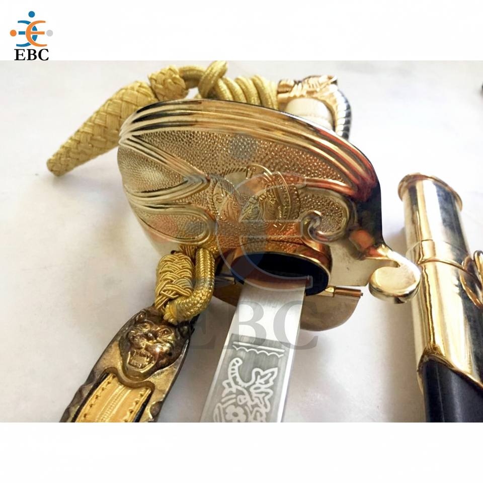 ดาบเหล็กสำหรับพิธีการของนักเรียนนายร้อย ด้ามจับ/ปลอกดาบสีทอง พร้อมห่วงคล้องแบบยุทธวิธี ปลอกดาบหนัง ทำด้วยมือ สายคาดดาบสั่งทำพิเศษ