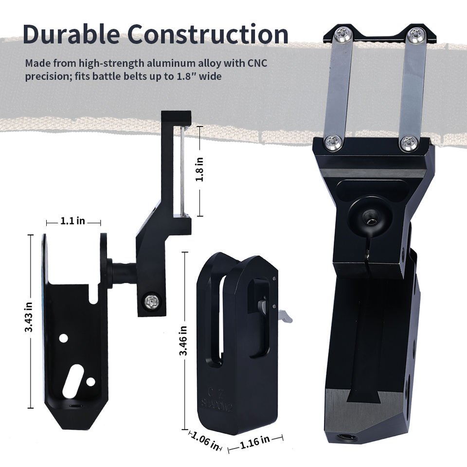 คลิปหนีบเข็มขัดยุทธวิธี ซองปืนอลูมิเนียม Ipsc ซองปืน CNC สำหรับเข็มขัดยุทธวิธี สำหรับการแข่งขันเพ้นท์บอล อุปกรณ์ล่าสัตว์