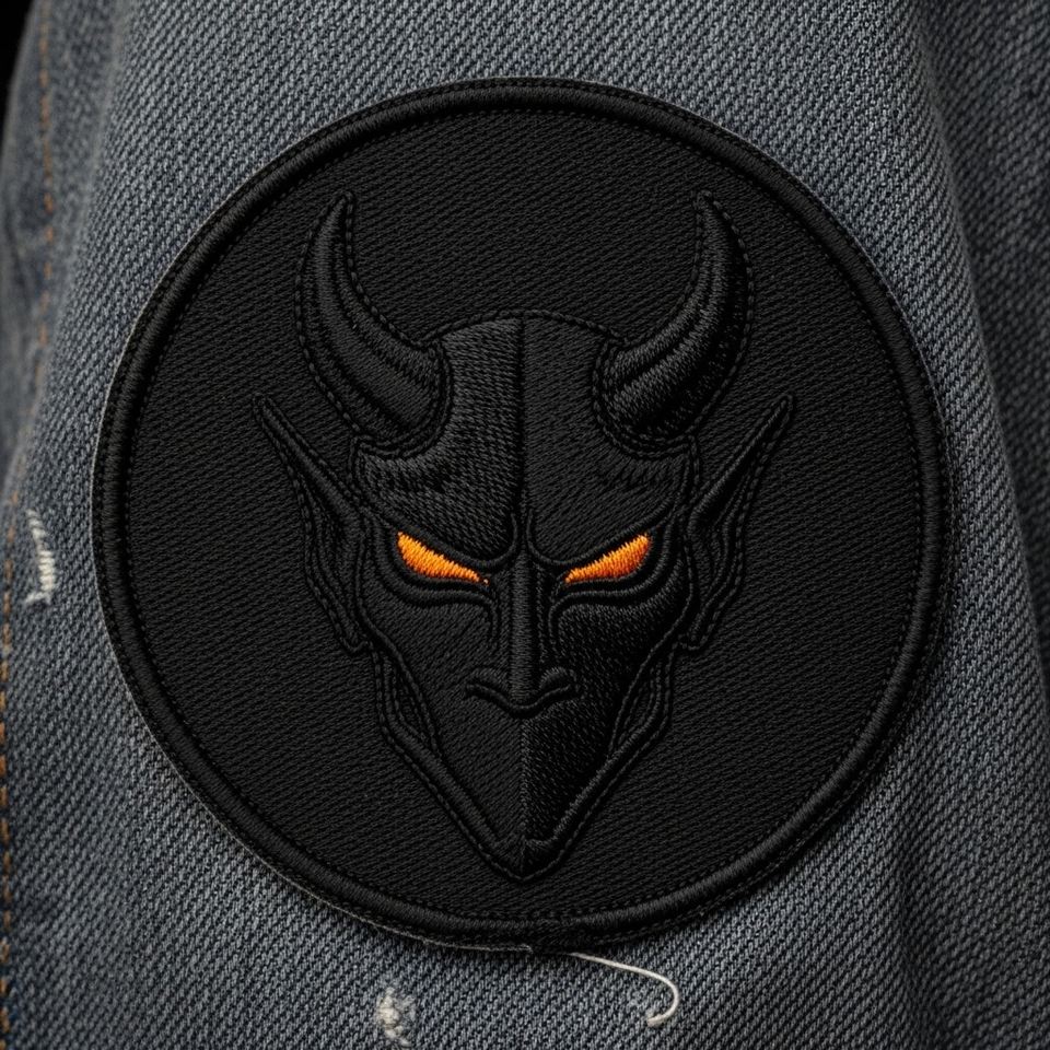 แผ่นปะรูปปีศาจสีดำแบบรีดติดเสื้อผ้า ปักด้วยเครื่องจักร ลายวงกลม ดวงตาเรืองแสง สไตล์โกธิค สำหรับเสื้อแจ็คเก็ตนักขี่มอเตอร์ไซค์
