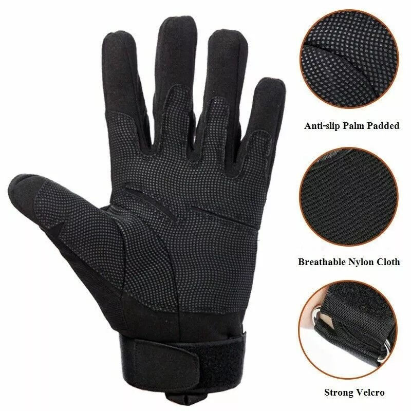 ถุงมือยุทธวิธีแบบเต็มนิ้วสำหรับกิจกรรมกลางแจ้ง เช่น ยิงปืน ขี่จักรยาน ปืนเพนท์บอล ขี่มอเตอร์ไซค์ ฟิตเนส ทำจากหนังแท้จากปากีสถาน