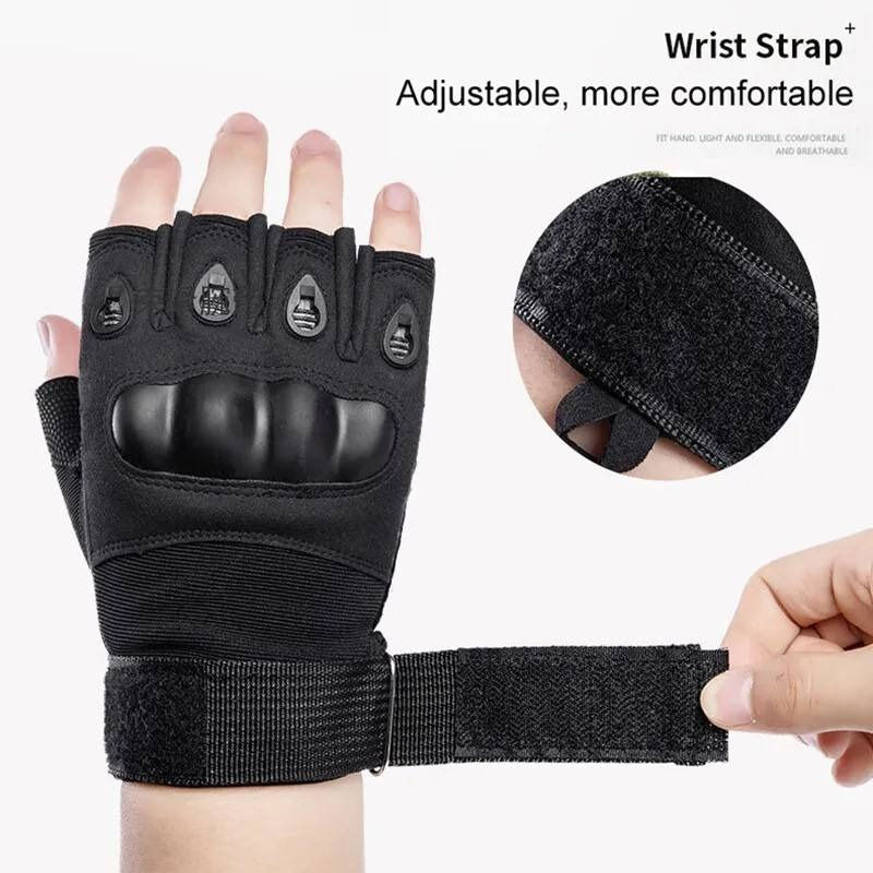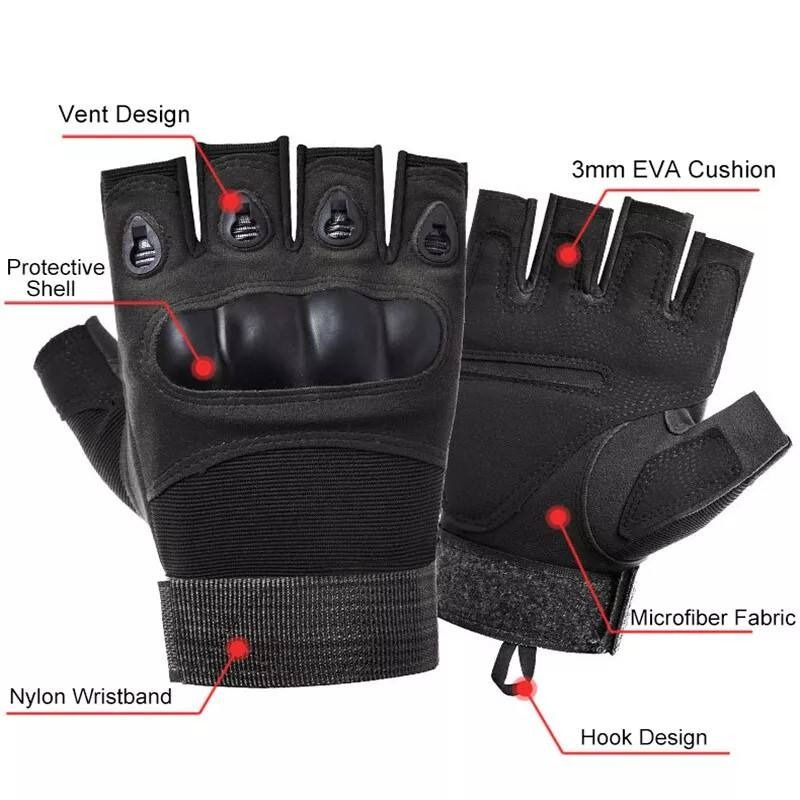 ถุงมือยุทธวิธีแบบครึ่งนิ้ว สำหรับกิจกรรมกลางแจ้ง เช่น ยิงปืน ขี่จักรยาน ปืนเพนท์บอล ขี่มอเตอร์ไซค์ ฟิตเนส ทำจากหนังแท้จากปากีสถาน