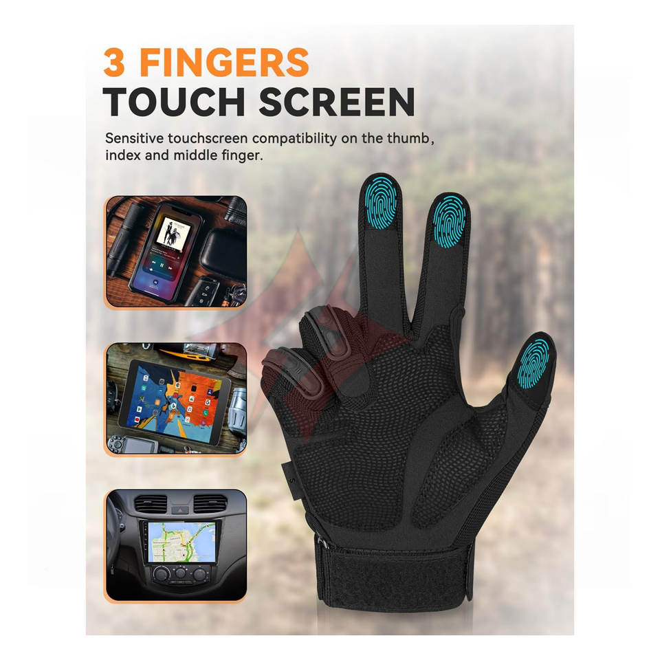 ถุงมือยุทธวิธีสำหรับผู้ชาย รองรับหน้าจอสัมผัส ป้องกันข้อนิ้วแบบแข็ง และเสริมแผ่นรองฝ่ามือสำหรับขี่มอเตอร์ไซค์