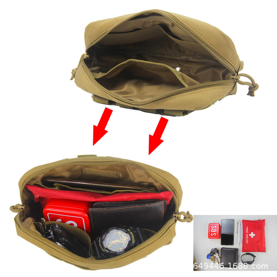 กระเป๋าคาดเอวแบบยุทธวิธี กระเป๋าอุปกรณ์เสริมกลางแจ้ง ระบบโมลล์ ปิดด้วยซิป กระเป๋าทรงสี่เหลี่ยมแบบพกพาสำหรับแขวนเสื้อกั๊ก