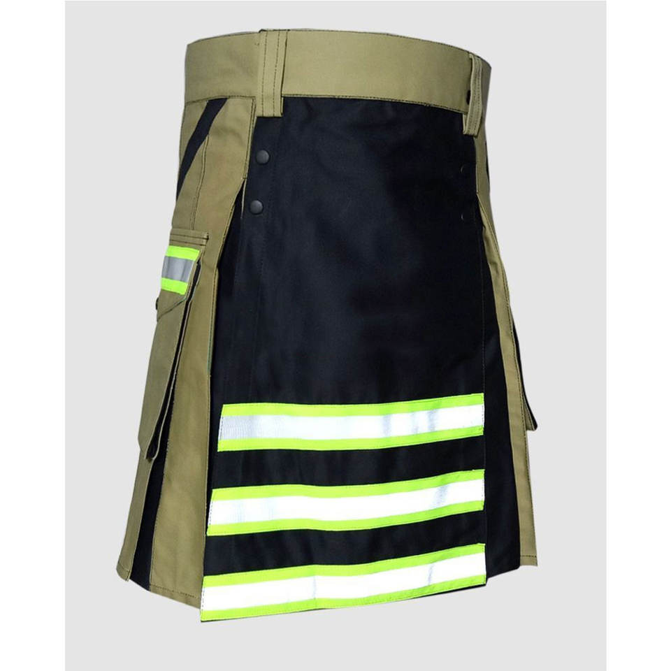 Tactical Olive Green Firefighter Hybrid Kilt Scottish Handmade High Visibility Firemen Working Kilts