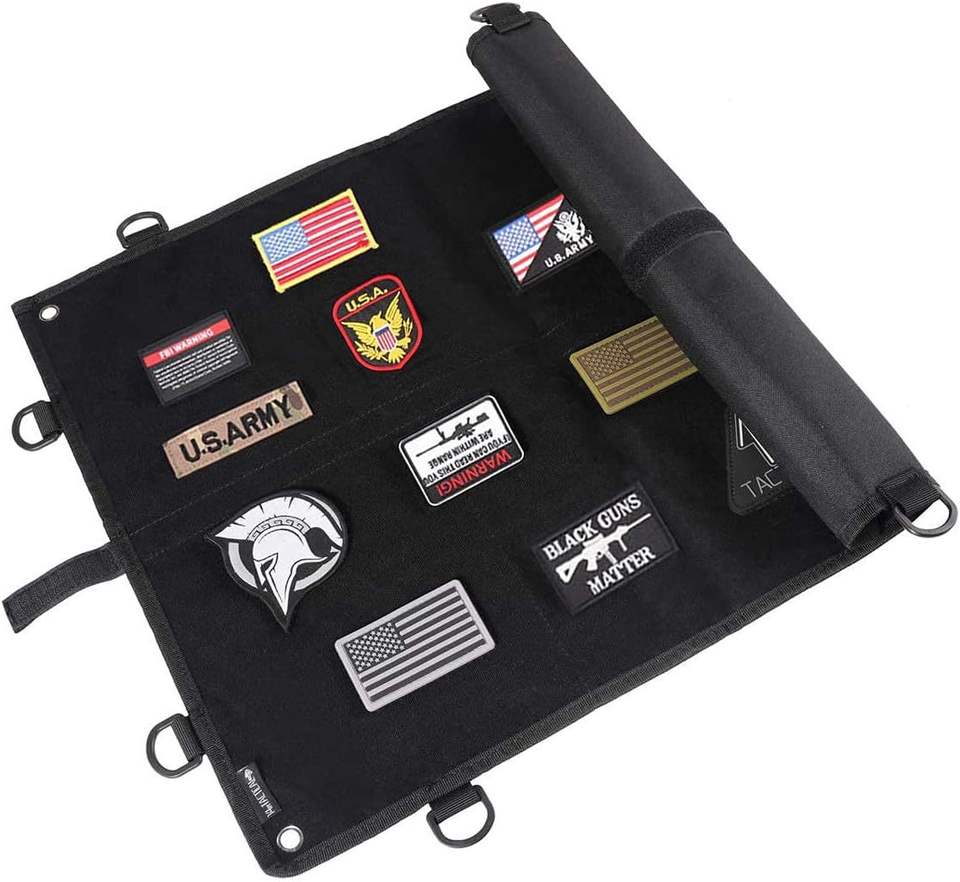 แผงโชว์แผ่นปะทางยุทธวิธีสำหรับจัดเก็บแผ่นปะแบบทหารแผ่นติดผนังพับได้พร้อมห่วงสแตนเลส