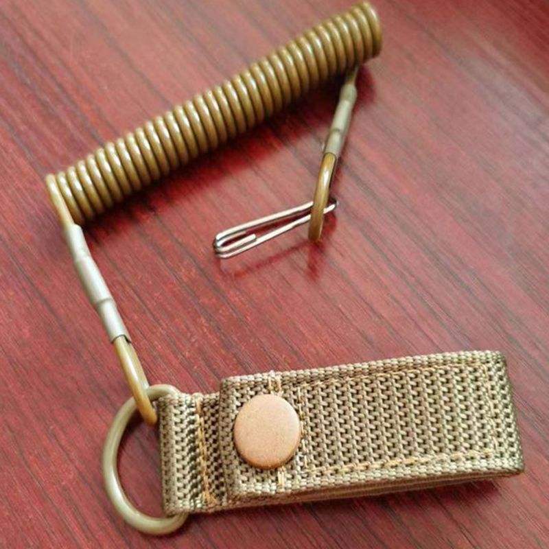 สายคาดไนลอนแนวยุทธวิธีสายสปริงแบบกลางแจ้งพวงกุญแจสายถักด้วยสแตนเลสโซ่เอวยางยืด