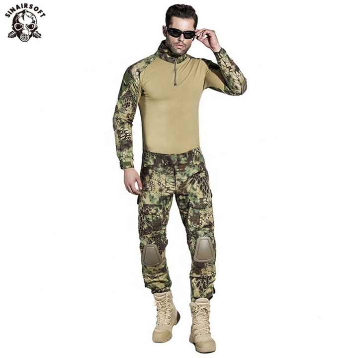 ชุดยุทธวิธีลายพรางสำหรับการล่าสัตว์ พร้อมแผ่นรองเข่าและข้อศอก กางเกงเพ้นท์บอล ชุดยูนิฟอร์มรักษาความปลอดภัย