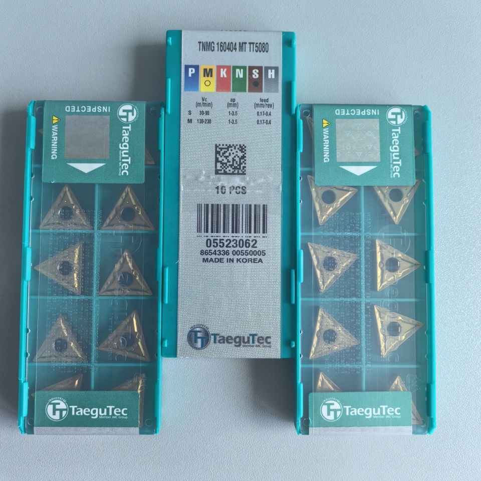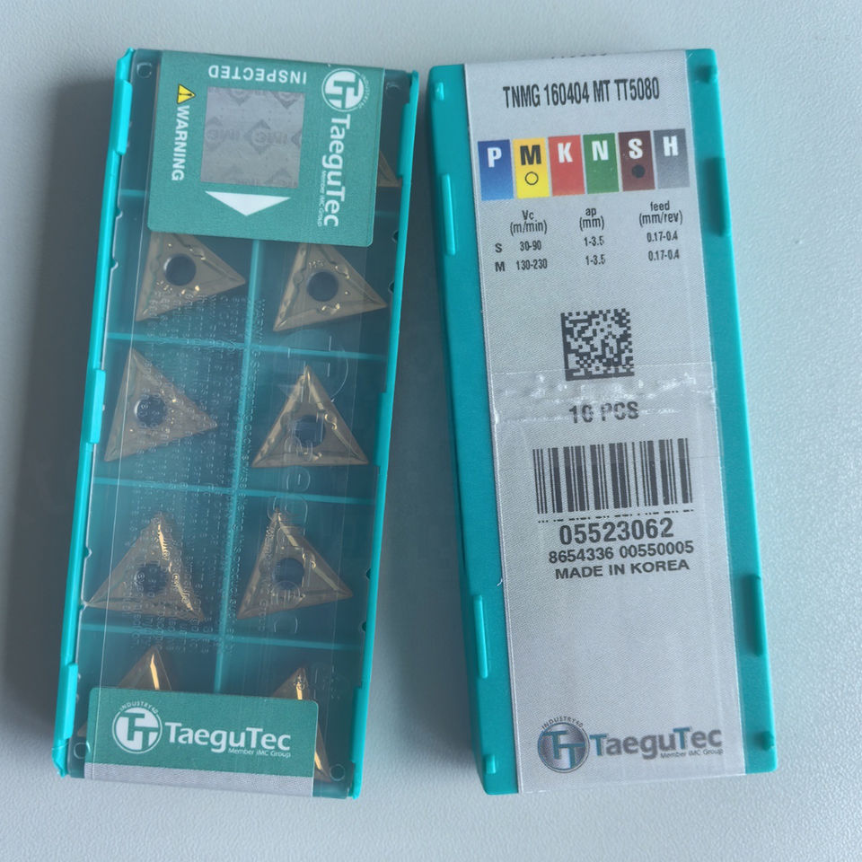 เม็ดมีดกลึงคาร์ไบด์ TaeguTec รุ่น TNMG160404 MT TT5080 สำหรับเครื่องกลึง CNC มีจำหน่ายแบบ OEM ความแข็ง 65HRC เคลือบ CN สำหรับ PCD/PCBN/CFD รับประกัน 1 ปี