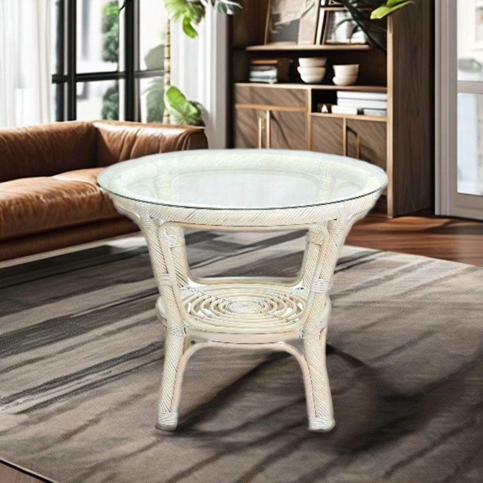 โต๊ะกาแฟทันสมัยงานแฮนด์เมดสไตล์เอเชีย ยี่ห้อ Tafano พร้อมท็อปกระจก สำหรับเฟอร์นิเจอร์ห้องนั่งเล่น วัสดุหวาย/ไม้สาน ไม่สามารถพับได้