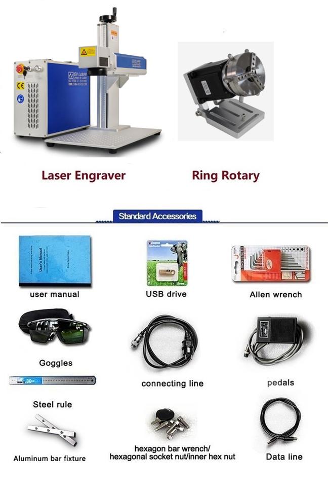 เครื่องเลเซอร์มาร์กกิ้งสำหรับร้านขายเครื่องประดับ รุ่น D69 สำหรับสลักแท็ก แหวน กำไลข้อมือ จี้ตัวอักษรธุรกิจขนาดเล็ก พร้อมแกนหมุน