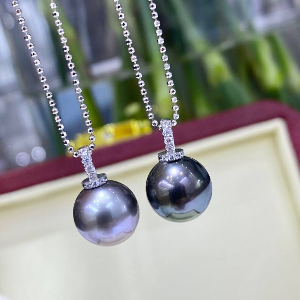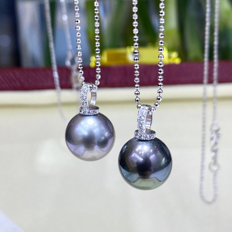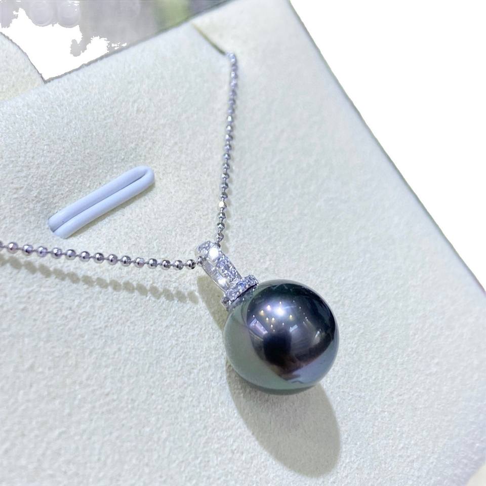 สร้อยคอมุกดำตาฮิติ พร้อมจี้ประดับเพทายสีเทาแพลตตินัม ดีไซน์หรูหรา สีธรรมชาติ รูปทรงโดดเด่น