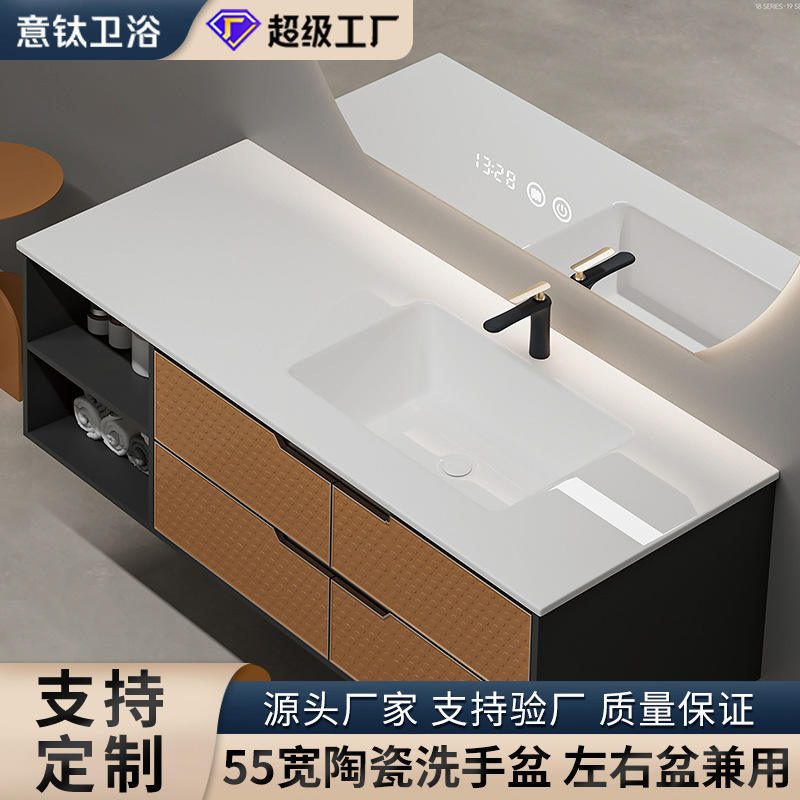 ตู้ห้องน้ำอ่างล้างหน้าเดี่ยวไท่จง ยี่ห้อ Yiti รุ่น R22 ขนาด 55 ซม. แบบฝังกึ่งฝัง พร้อมอ่างเซรามิกในตัว วางได้ทั้งซ้าย/ขวา