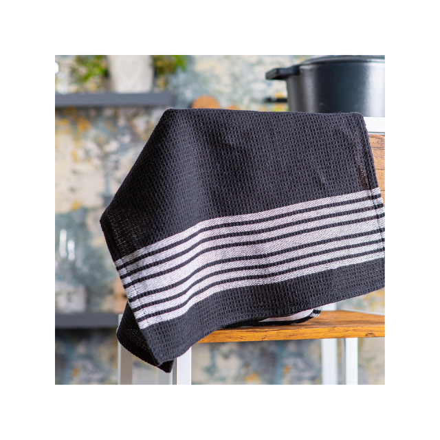 ผ้าขนหนูสำหรับรับประทานอาหารลายทางสีดำและสีขาวของช่างตัดเสื้อผ้าแคนวาสด้วยผ้าแคนวาสรูปตัว100% น้ำหนักเบาผ้าเช็ดชา