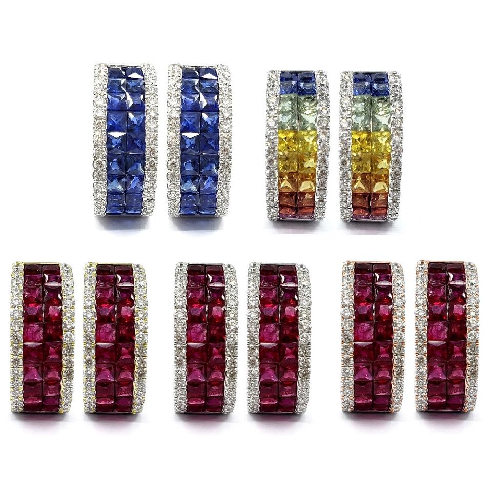 ต่างหูห่วงคลาสสิกเพชรแท้และทับทิมทองคำขาว 18k คุณภาพดีที่สุด ขายดี ออกแบบตามสั่ง สำหรับผู้หญิง