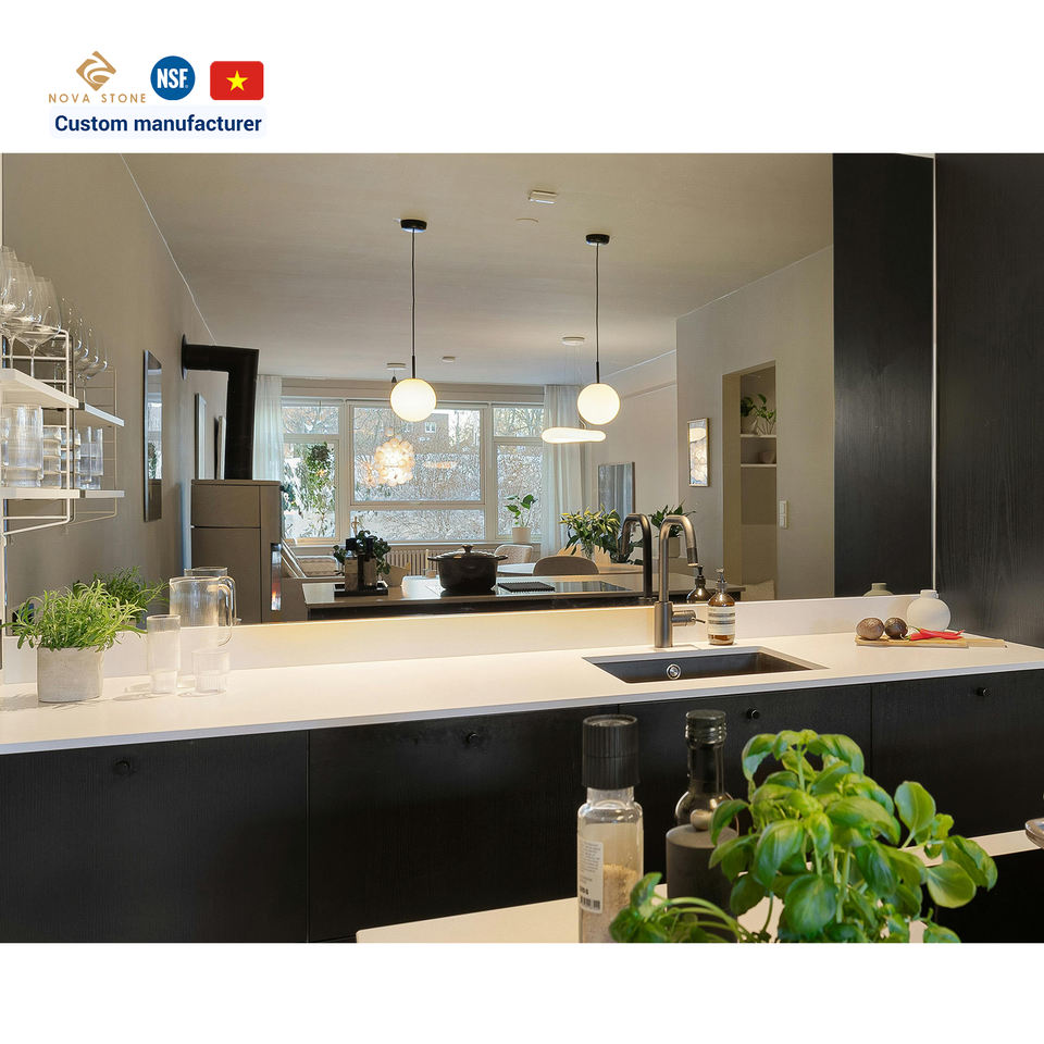 หินควอตซ์เทียมสีขาวบริสุทธิ์สำหรับใช้ในบ้านบาร์สำหรับตกแต่งบ้าน