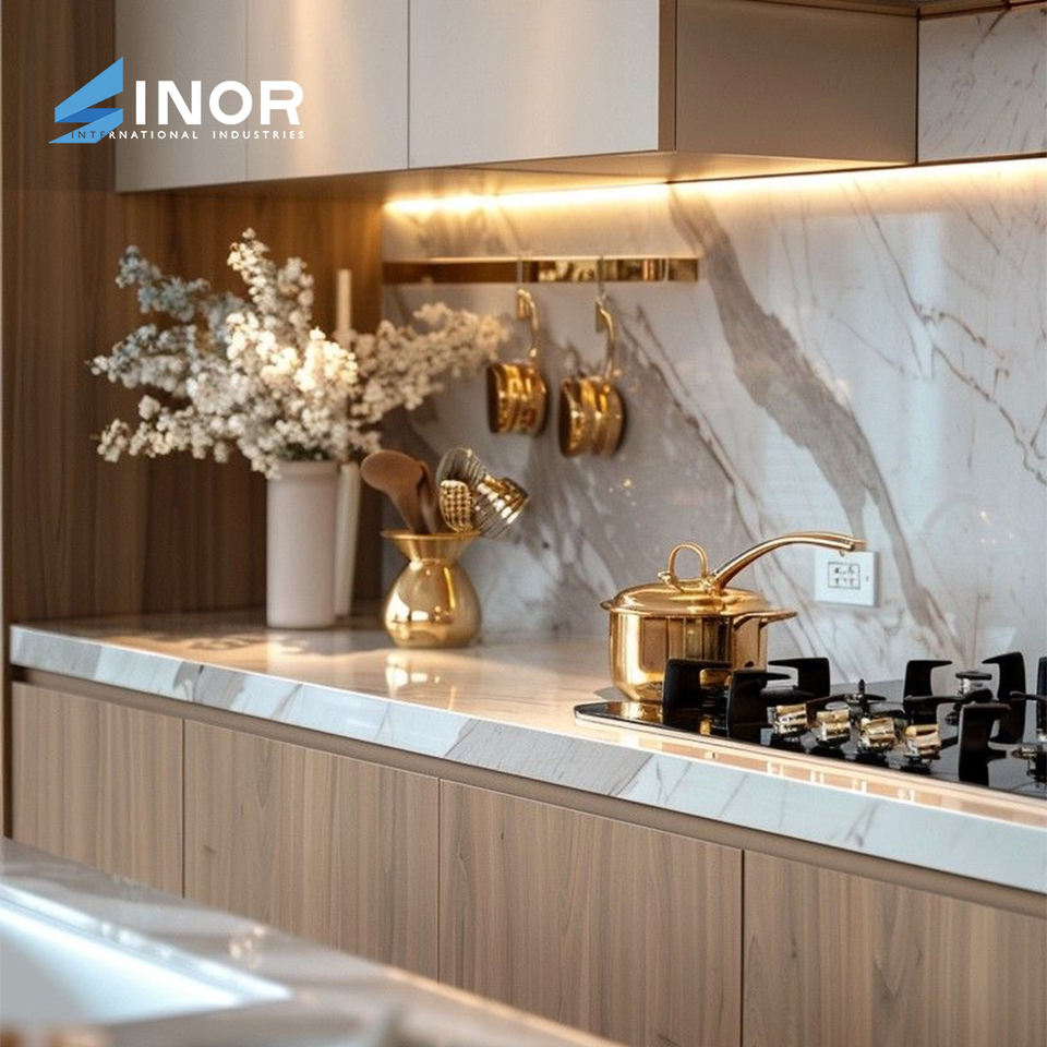 ที่ปรับแต่งตู้ครัวด้านบนบานพับหินอ่อน5 + ลิ้นชักแก้วทรงมงกุฎแบบสอดตัวยึดผนังประตูแบบนุ่ม