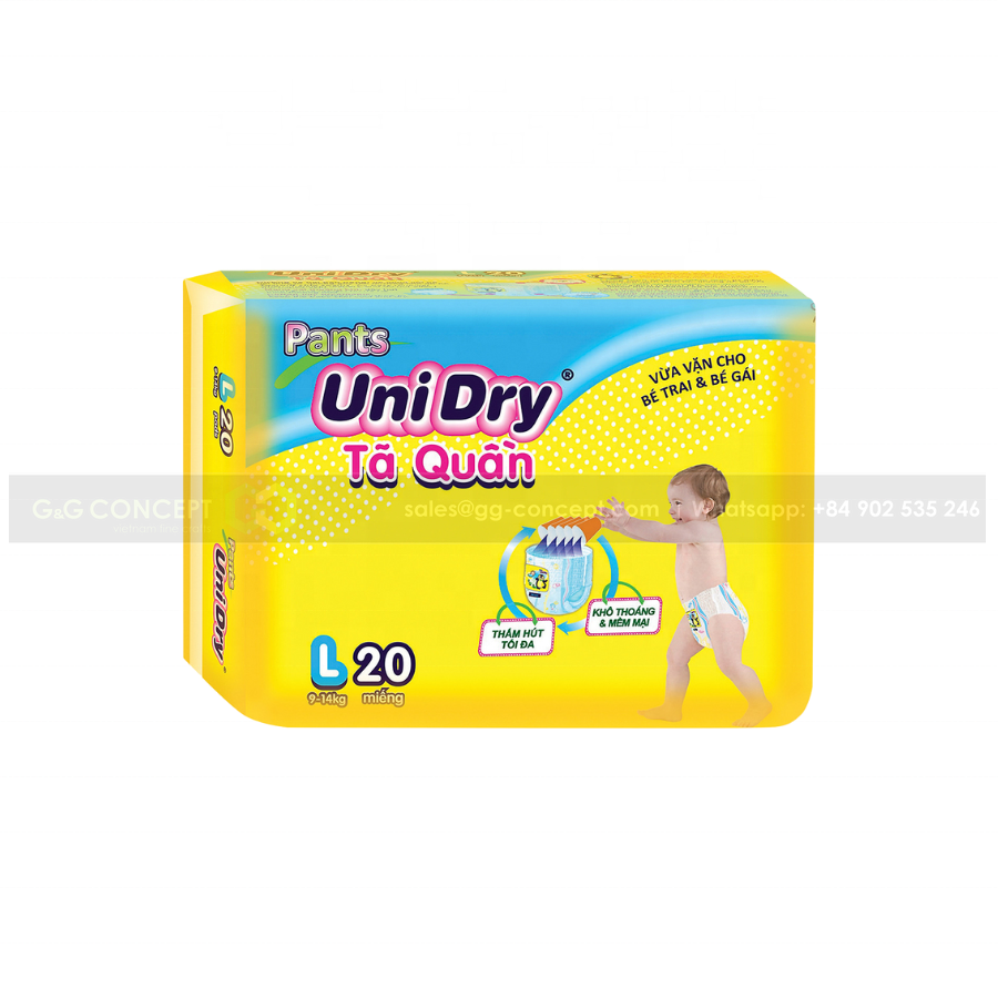 Taisun กางเกงแห้งสำหรับเด็กทารก Unidry,กางเกงขนาดใหญ่ L20ชิ้นพร้อมการดูดซึมสูงสุด20ชิ้นต่อถุงผลิตในเวียดนามกางเกงเด็กจำนวนมากสำหรับขาย